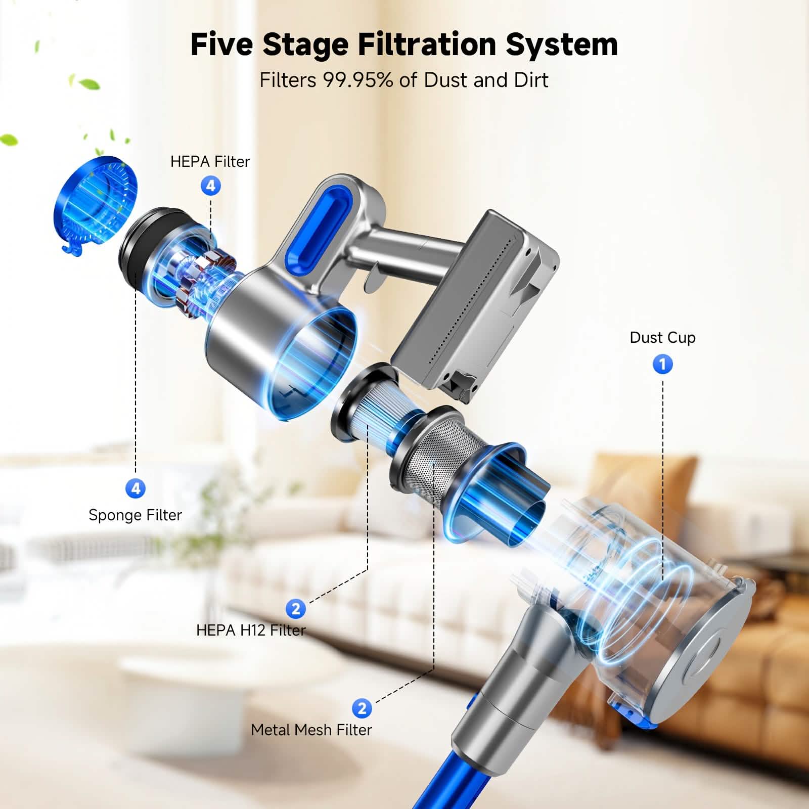 Cordless Vacuum Cleaner with LED Light & Removable Battery – Blue